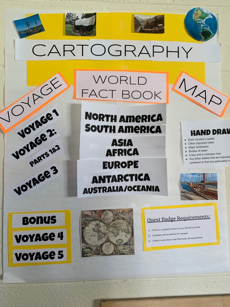 The Heroes will explore this question by traveling the world in the Cartography Quest. To break it down, there are 3 parts to this Quest: voyages, the World Fact Book, and a hand-drawn map.