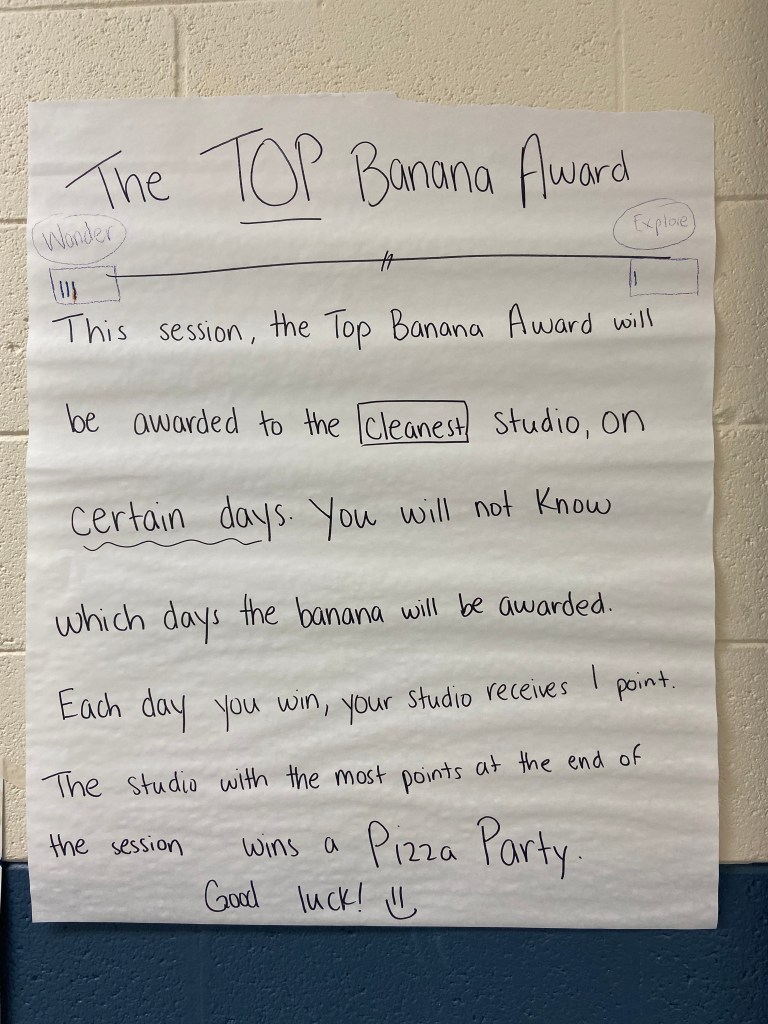 Day 1, the motivation was a little higher. Day 2, a Spark judge gave out the first Top Banana Award and motivation sparked. Today, one week later, the Wonder Studio is pulling ahead 3 to 1 on the Explore Studio and motivation is soaring.