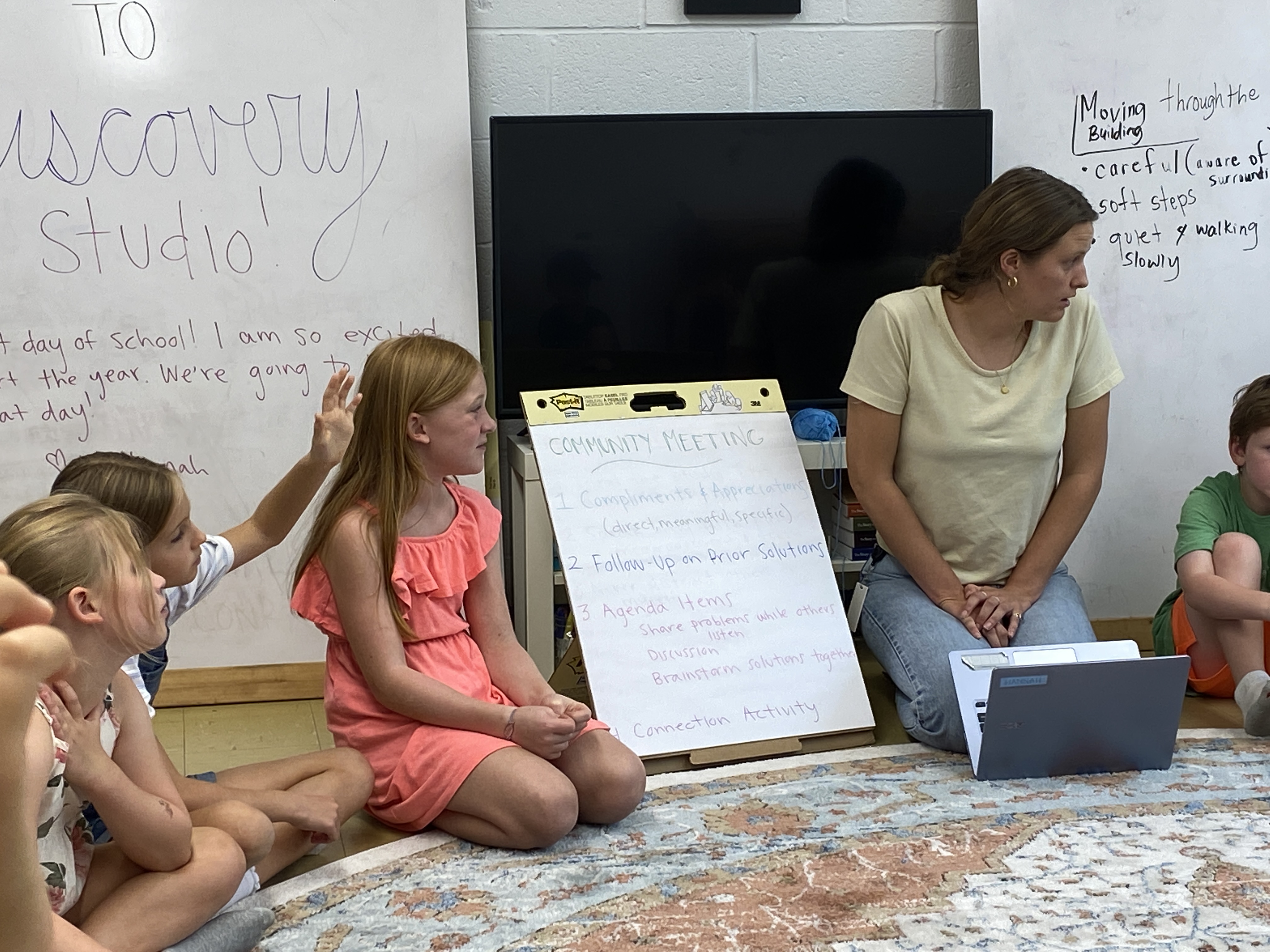 From here learners were introduced to the three most important systems and routines in Discovery Studio: Daily Goal Setting, Studio Maintenance, and Community Meeting.