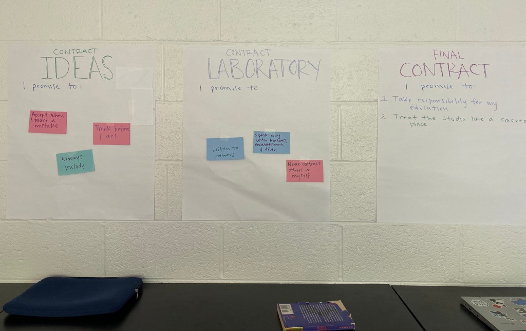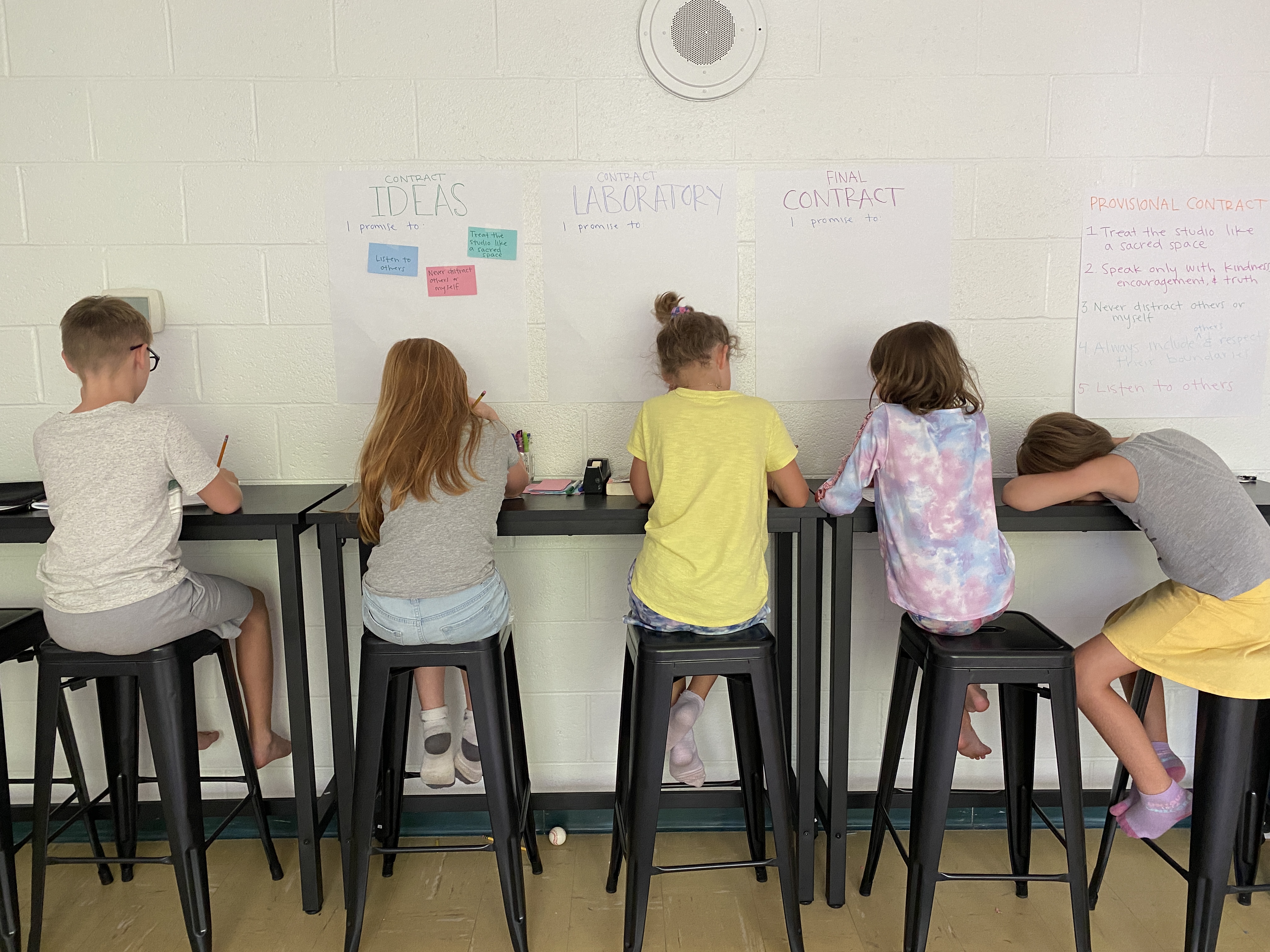 These ideas became the beginning of their studio contract. Each week, they get to pitch new ideas, try them out, and then vote on whether they are ready to add them to their studio contract. At the end of the session, they will sign the contract and use it as a reminder of their promises to each other throughout the year.