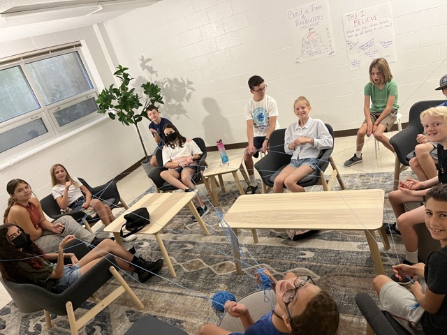 During the first few moments of the first day in Adventure Studio, learners spent time making connections with a ball of yarn. They shared one of their individual strengths and how it might contribute to their team over the course of the year, each learner connecting to the previous learner’s thoughts to create a web with the yarn. When the web was complete, they noticed what happens when one person pulled too tight or let go: the whole team felt the impact. This was their first step in Learning to Live Together.
