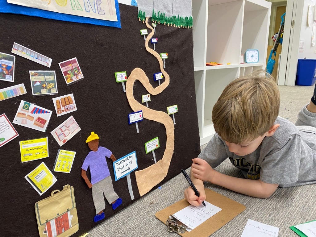 Welcome to Spark Studio! Spark learners will dive into the first session individually and as a community as they learn to live together in their new environment. They will focus on building their independence and collaborative relationships through grace and courtesy lessons. Each week, learners will gain an awareness of how their personal actions affect the studio and learn how to make respectful and kind choices that they outline in our studio contract. They will model and practice routines in the studio, as well as explore materials in the practical life, math, sensorial, cultural, writing, and reading areas. Through hands-on learning activities in their new project space (formerly the movement room), they will further explore what it means to be a community. They’ll work with a wide variety of materials to create self-portraits and harness their collective creativity to build a large-scale model of The Village School!