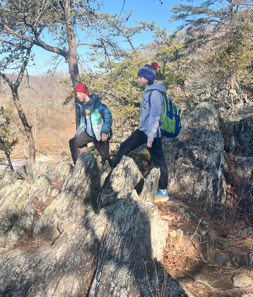 Adventure Studio brings a whole different level of uncomfortability in building a strong root system. As a guide, I find my role constantly challenged as the studio ebbs and flows through challenging life experiences. Recently, we all embarked on the Billy Goat trail. The guides and I scoured the internet looking for whether the trail would be safe after the ice and snow leftover from our most recent winter storm. When we couldn’t find a solid answer, we all found ourselves thinking – we can do this, they can do this, we will all be together and it will be okay! As we started our hike, it was indeed one big ice sheet. We all found ourselves looking at each other, knowing what each of us was thinking – can we really do this? We all took it one step at a time. There were many falls, slips, and catches from fellow peers. At one point, myself and another learner even found ourselves off the path, stuck between two big boulders. Three learners immediately came to our rescue and guided us down. They beamed for the rest of the journey, chanting to the rest of the group “We just saved Ms. Bridget!”