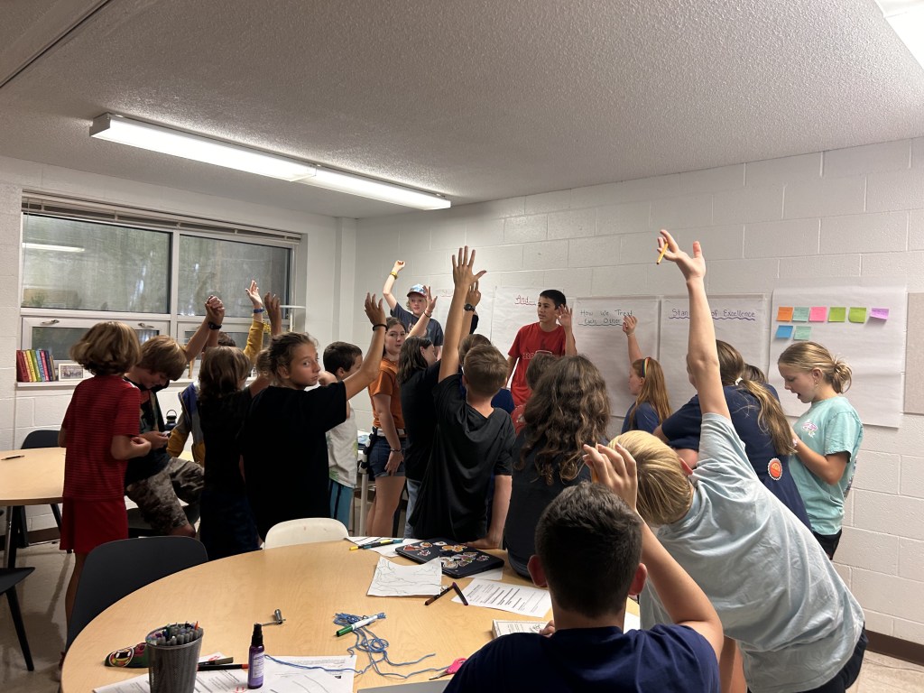 Imagine this. It’s a humid, overcast Thursday morning. After two hours of focusing on Morning Work, learners are beginning to buzz around the studio, indicating they are ready to transition to the next thing on the schedule. The Community Meeting Leaders call for everyone to circle up and begin taking us through our sign-up list. The studio brainstorms solutions to several issues, a learner shares a speech in American Sign Language for a skills badge, and another learner shares a book pitch. Though we veer off topic a few times, the Community Meeting Leaders manage to refocus the group. We make it to the final name on the Community Meeting list and the learner begins to share. They speak openly, honestly, and calmly about something that has been bothering them in the studio. They voice their perspective and feelings on the matter, and make their boundaries clear. When they finish, they call on another learner, opening the floor for comments or questions. In response to this learner’s vulnerability, learners share the following: