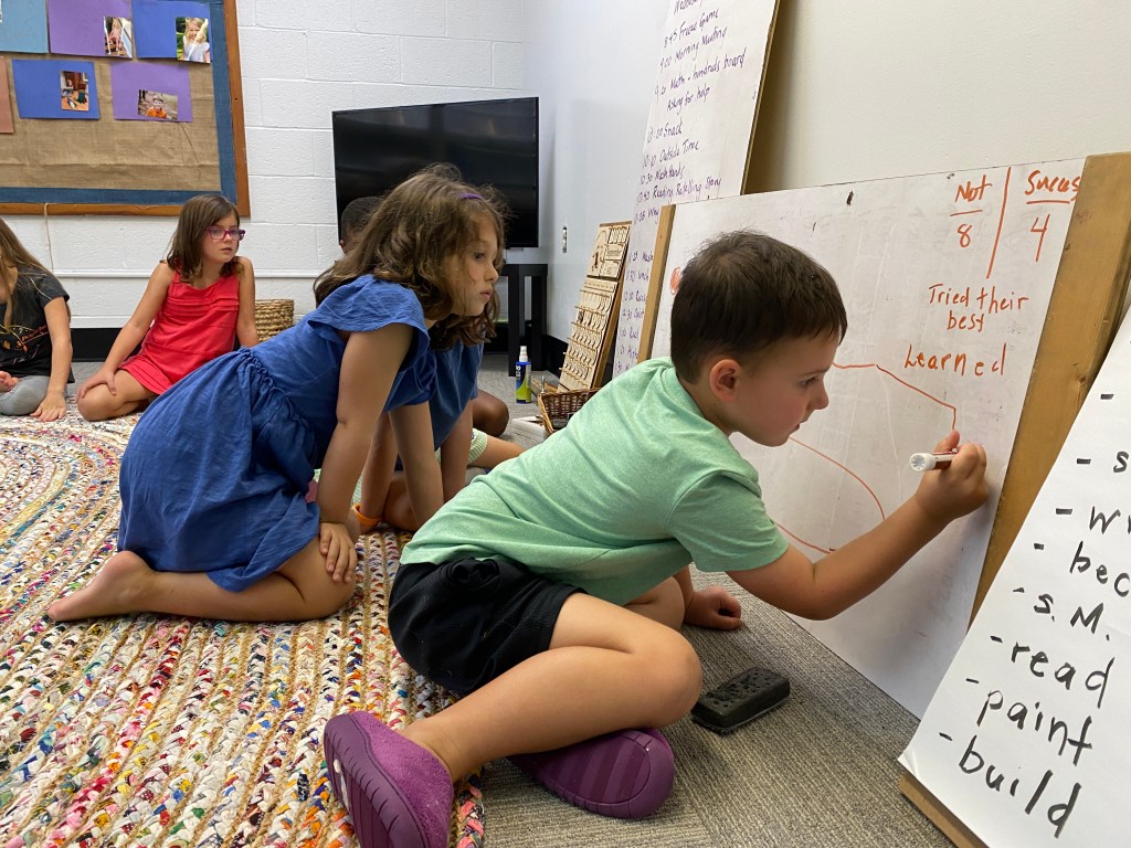 Once a week, you might check in with them, like we do in guide meetings. Maybe you touch base about goals they have and talk about how they felt their work during the week. You might choose a few of the questions suggested above, or think of your own. The challenge is to ask these questions from a genuine place of curiosity, without conveying expectations–met or unmet. Children can sense when we trust them to do it themselves and when we take a real interest in their lives.