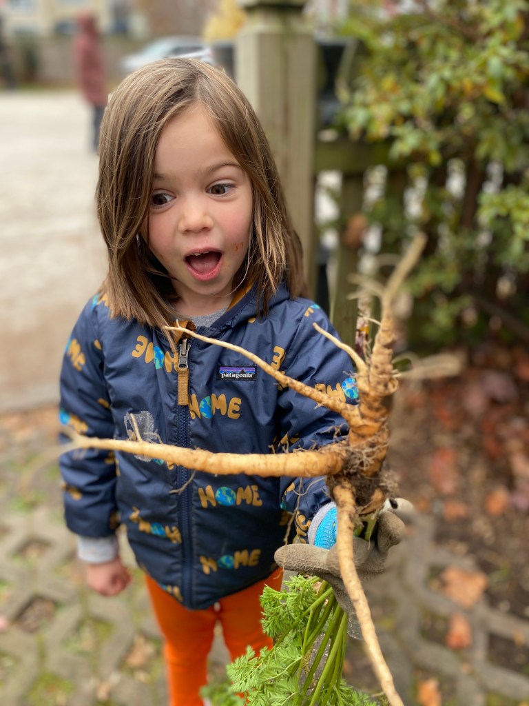 In Spark, this is experiential learning at its best. Children learn to do as they build fires in the pit built for 20. They learn about the limits of their balance as they climb on the hammocks and trees. They learn to live together as they mediate arguments over turns on the swing and retrieve ice packs for their hurt friends. They learn to be, to treat each other with kindness when they find out what is fun and what hurts others. Perhaps most importantly, they exercise autonomy over their entire school day. If they want to spend hours around the fire or take six turns on the trampoline, so be it. If they want to harvest carrots in the garden or help Ms. Jenny mow the lawn, that’s fine, too.